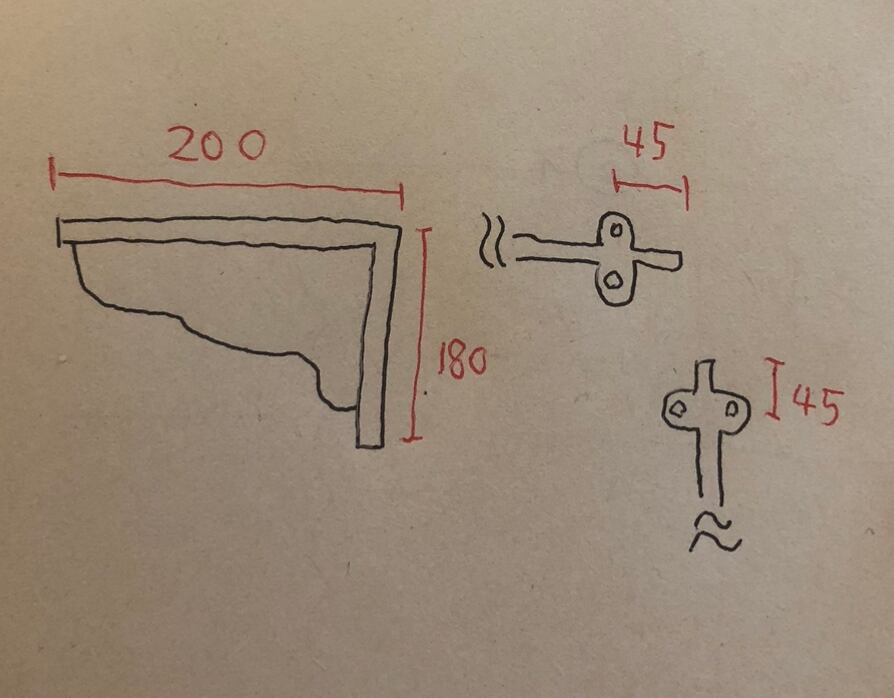 Londonで購入した、重厚感のあるしっかりとした作りのL字金具です。