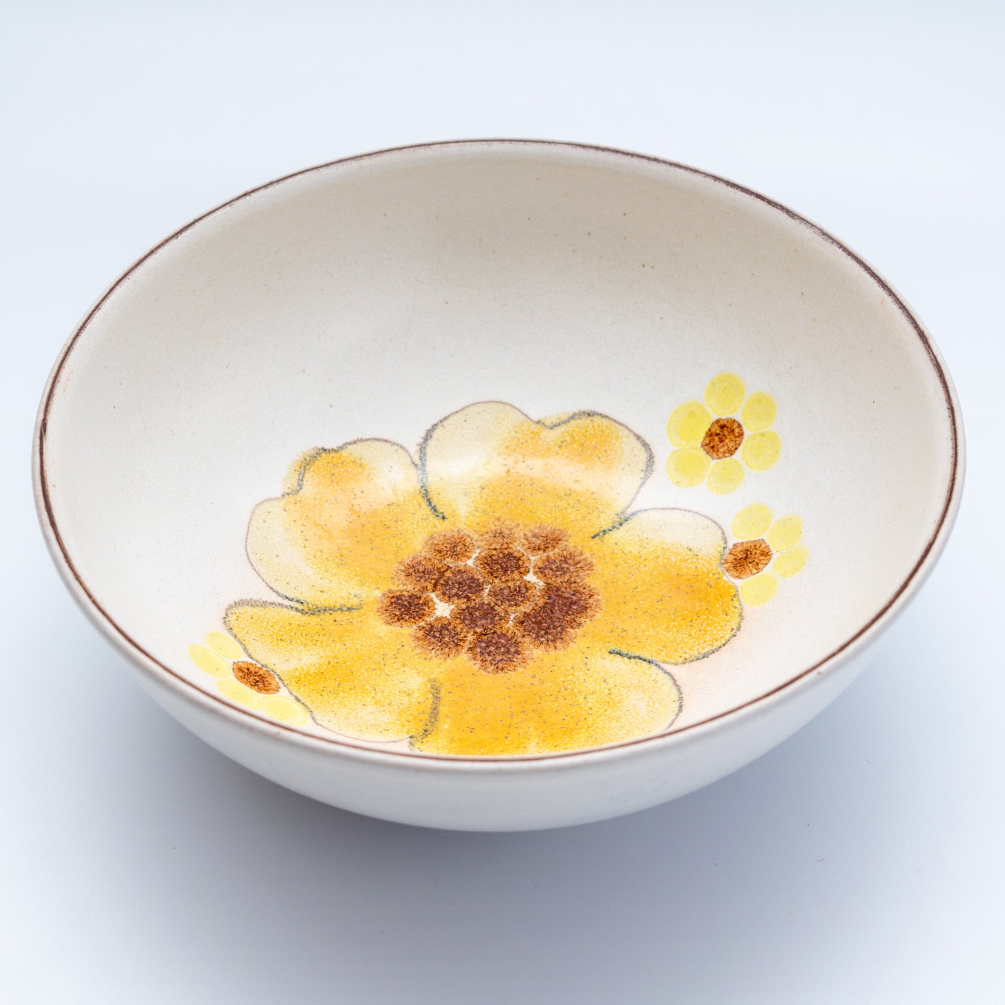 ハンドペイントですので、釉薬によるわずかな凹凸や、色にじみ、個体差などがあり、レトロないい味が出ています。直径17cmのボウルです。イギリスではスープボウルやシリアルボウルとして使われる使い勝手のいい大きさです。