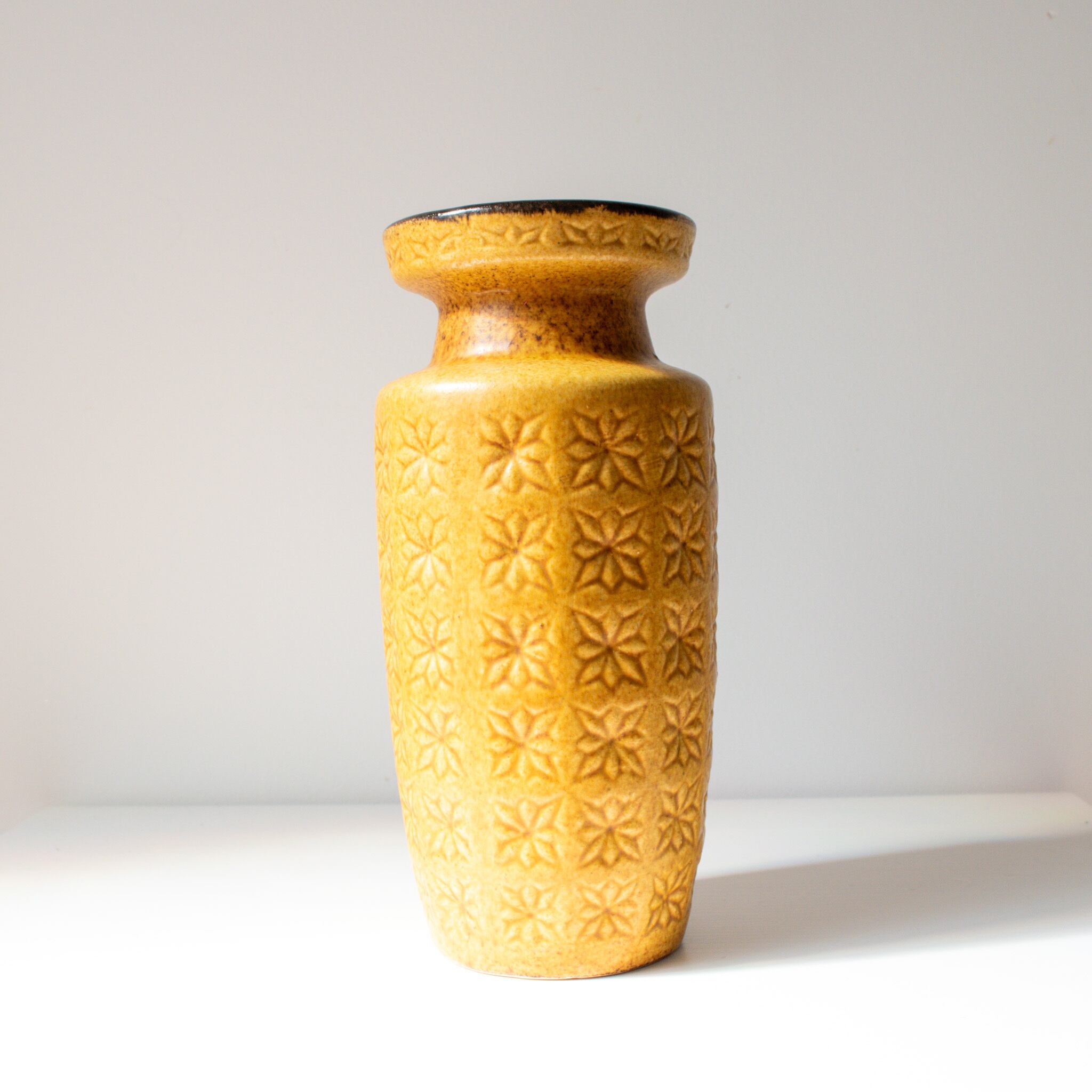 W.GERMANY黄色い花柄花瓶【西ドイツ・ウエストジャーマニー】送料無料〈vintage,ヴィンテージ,antique,アンティーク〉